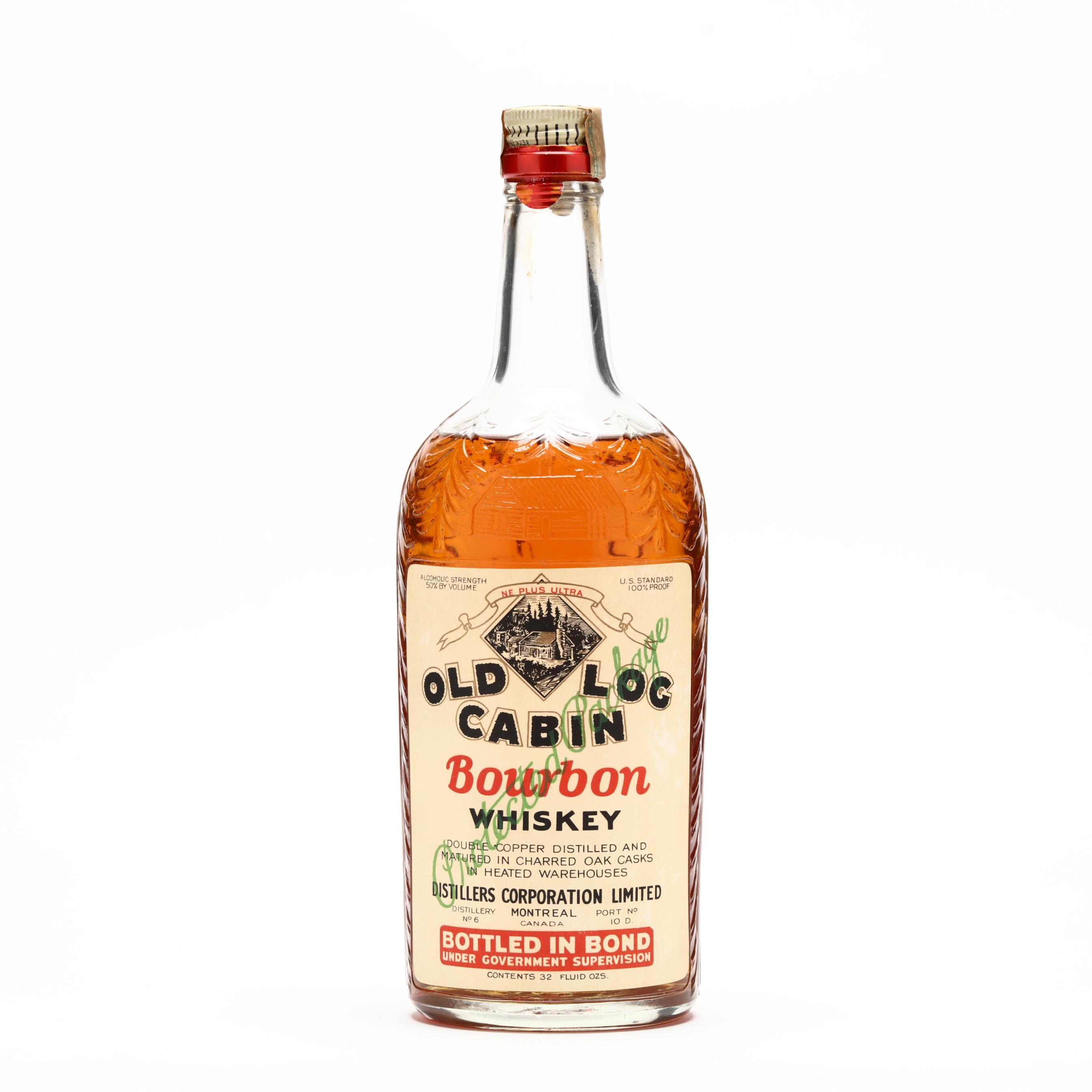 While both whiskey and bourbon are made from the same base ingredients a predominantly corn mash yeast and water a spirit can only be called bourbon if its crafted in the United States. Free shipping for many products. NV Old Log Cabin Bourbon Whiskey Bottled in Bond Distillers Corporation Limited Montreal Canada 50 thought to be 1924-1928 bottling appears to be fullmostly full bottle bottle.